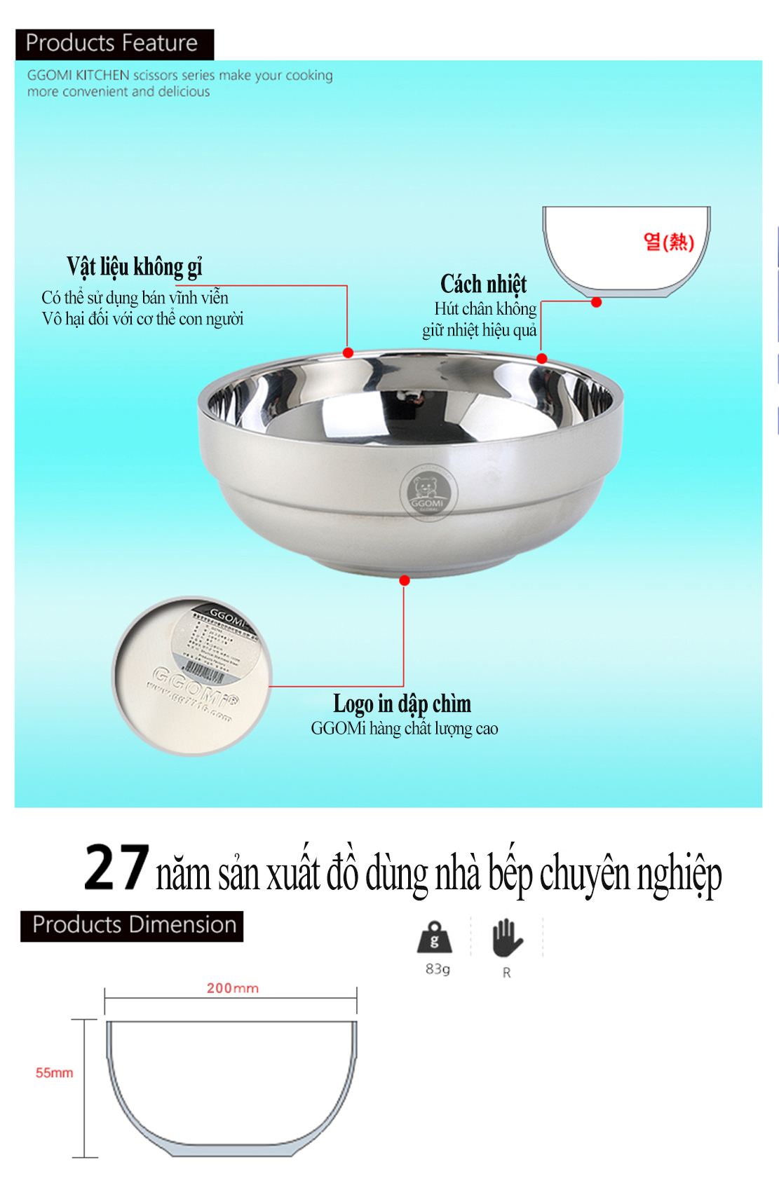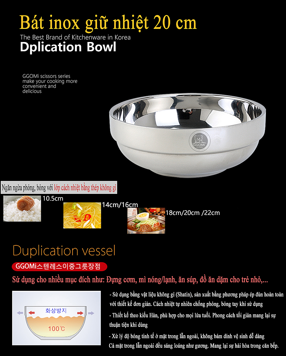 Tên sản phẩm: Bát cách nhiệt GGOMI 20cm GG762