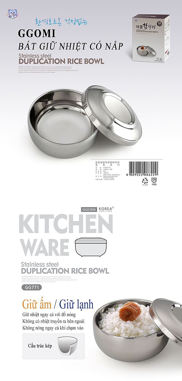 Tên sản phẩm: Bát cách nhiệt có nắp GGOMI 10cm - GG771