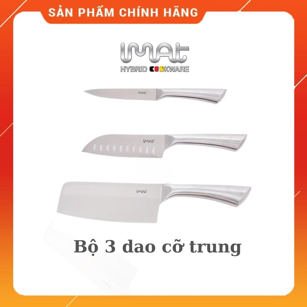 👉 Bộ 3 dao cỡ trung : 01 Dao gọt 5" đa năng iMat I 01 Dao Santoku cỡ nhỏ iMat: dài 24 cm (cán) I 01 Dao băm chặt, thái bản dày iMat: dài 32.4cm (cán)