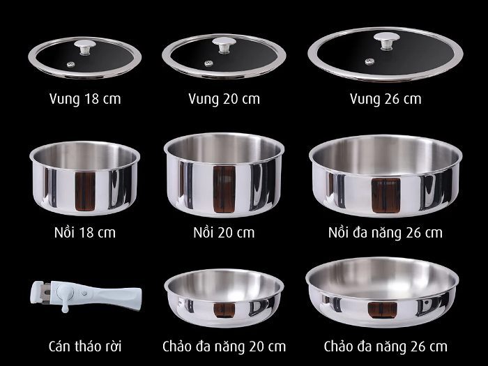 👉 Với bộ nồi chảo inox cán rời 9 món, căn bếp của bạn sẽ gọn gàng hơn, nấu ăn nhanh hơn và bữa cơm thêm trọn vị!