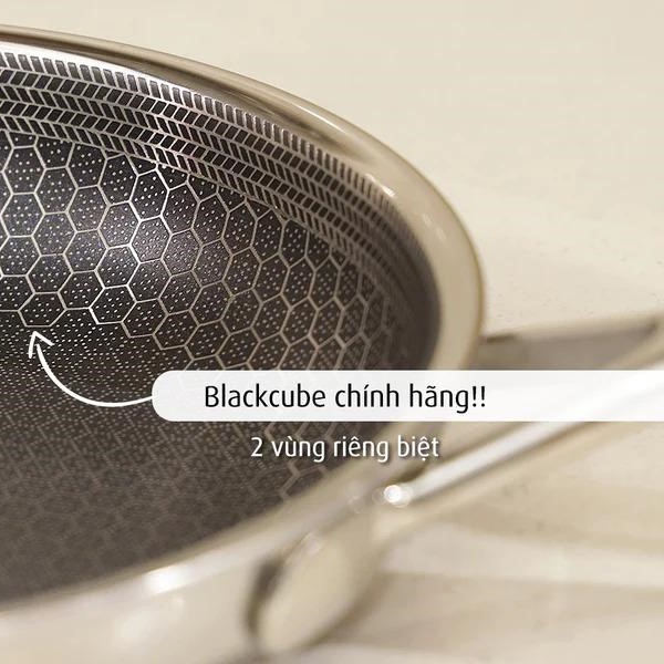 BLACKCUBE là khoan khắc bề mặt inox để làm trồi lên những trụ nhỏ xếp hình tổ ong, trụ inox trồi cao che chắn và bảo vệ những tác động từ các dụng cụ nấu ăn lên lớp không dính. Lớp không dính của hãng Daikin, Nhật bản không PFOA tốt cho sức khoẻ.