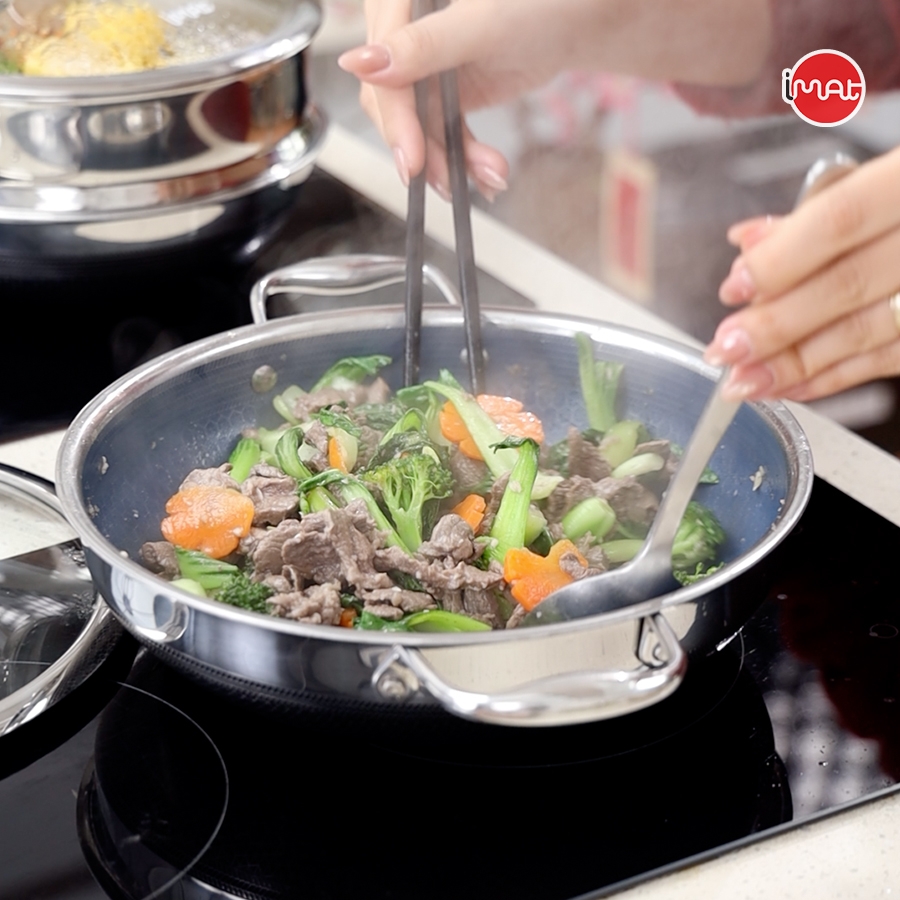 👉 Chảo đa năng iMat 26cm: Chiều dài 37.5cm| dài quai 6cm| Đường kính 26cm| đường kính đáy 17cm| Trọng lượng: 1021g| dày 2.2mm