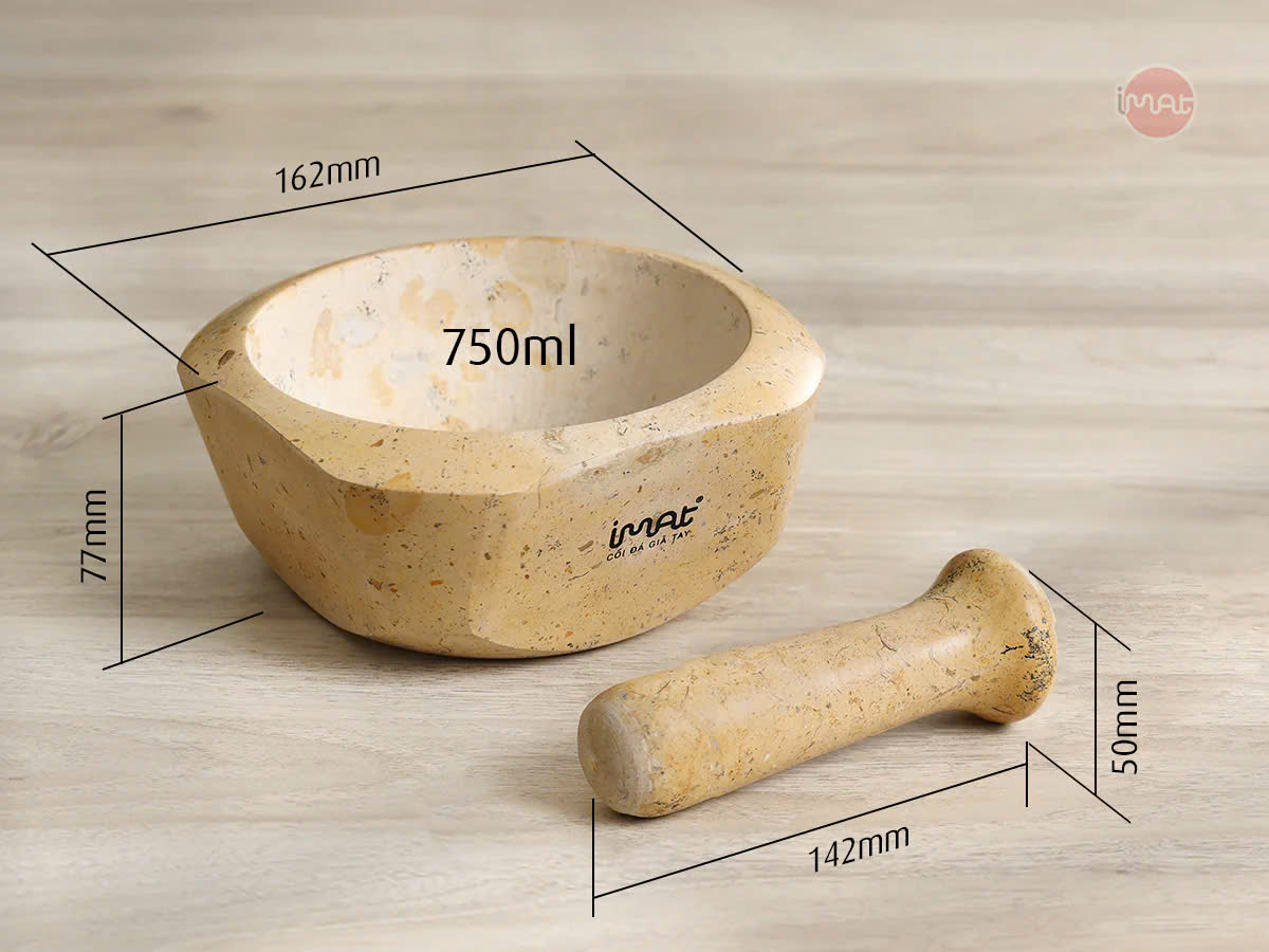 ✔ Dung tích 750ml – Kích thước lý tưởng để giã lượng thực phẩm vừa đủ cho bữa ăn gia đình.