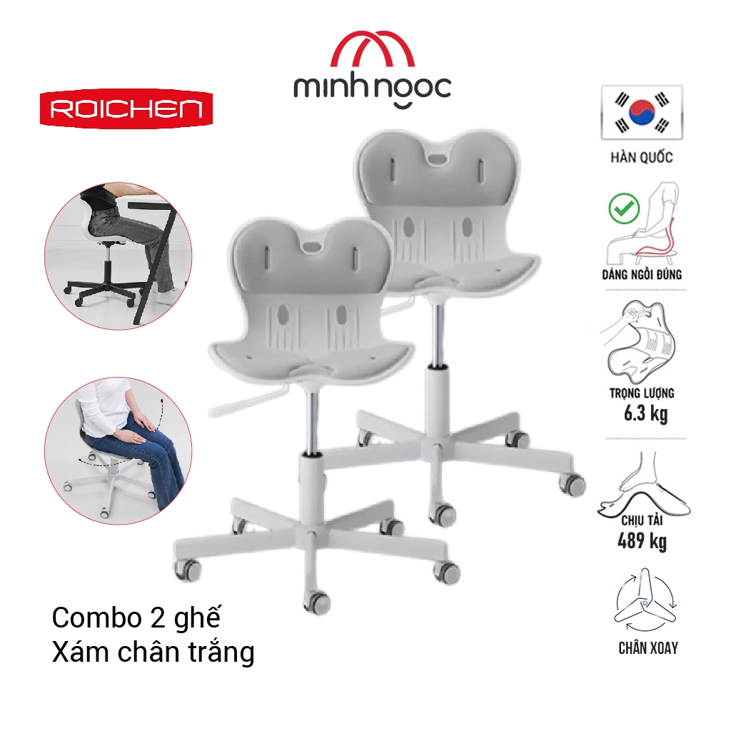 Ghế chỉnh dáng ngồi đúng có chân xoay từ thương hiệu Roichen Hàn Quốc được thiết kế giúp cho người dùng duy trì tư thế ngồi đúng một cách thoải mái, vững chãi, đưa cột sống quay trở về đường cong sinh lý. Điều này giúp ngăn ngừa các bệnh văn phòng do ngồi nhiều như đau lưng, cổ, vai, gáy...Hoặc thiếu tập trung khi học tập và làm việc do tư thế ngồi chưa đúng.