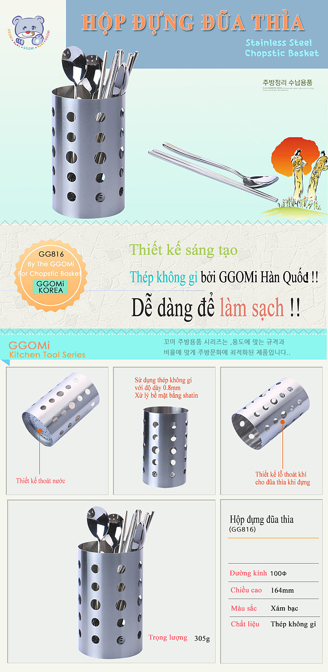 Tên sản phẩm: Dụng cụ đựng thìa đũa GGOMI GG816