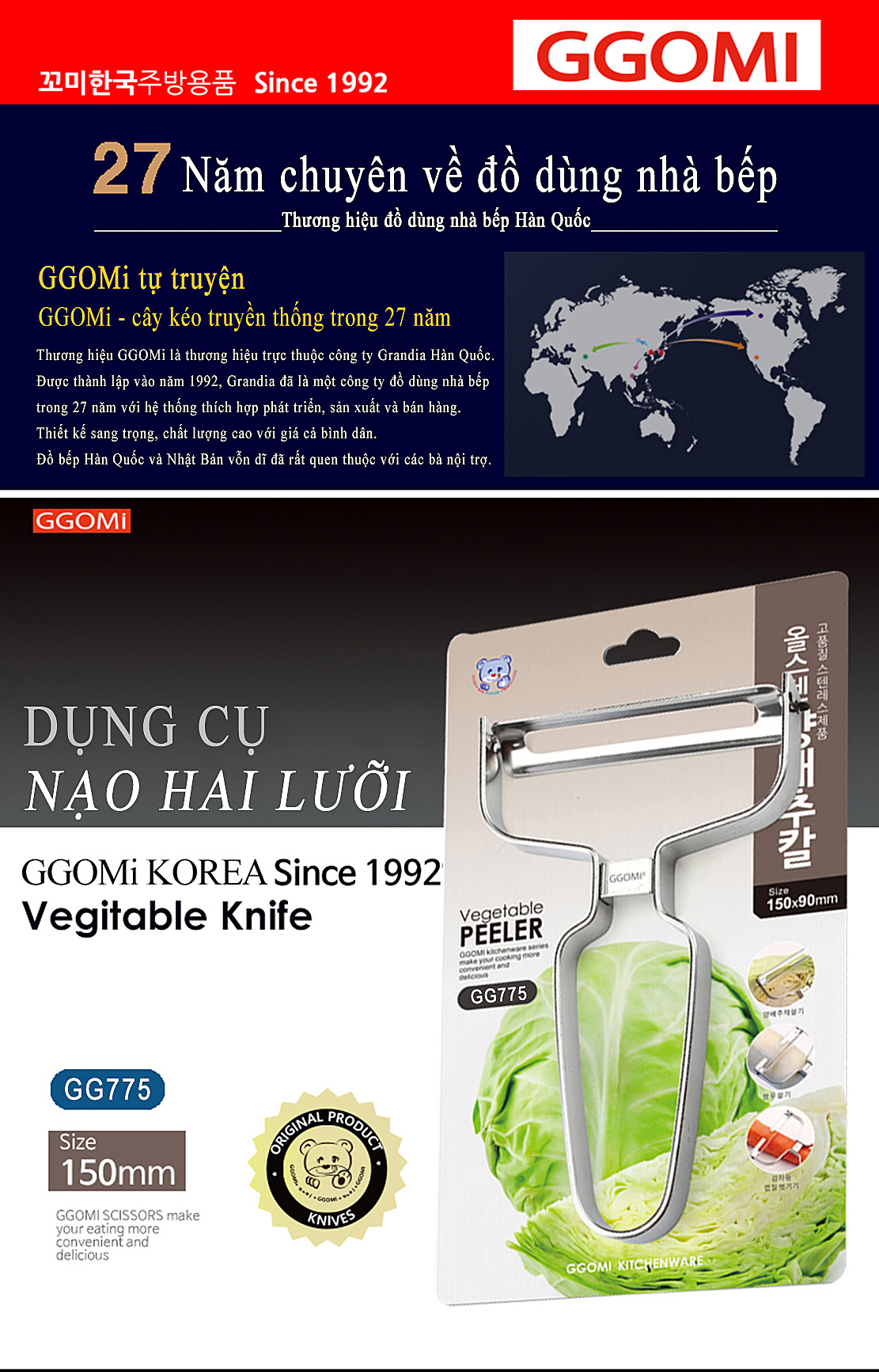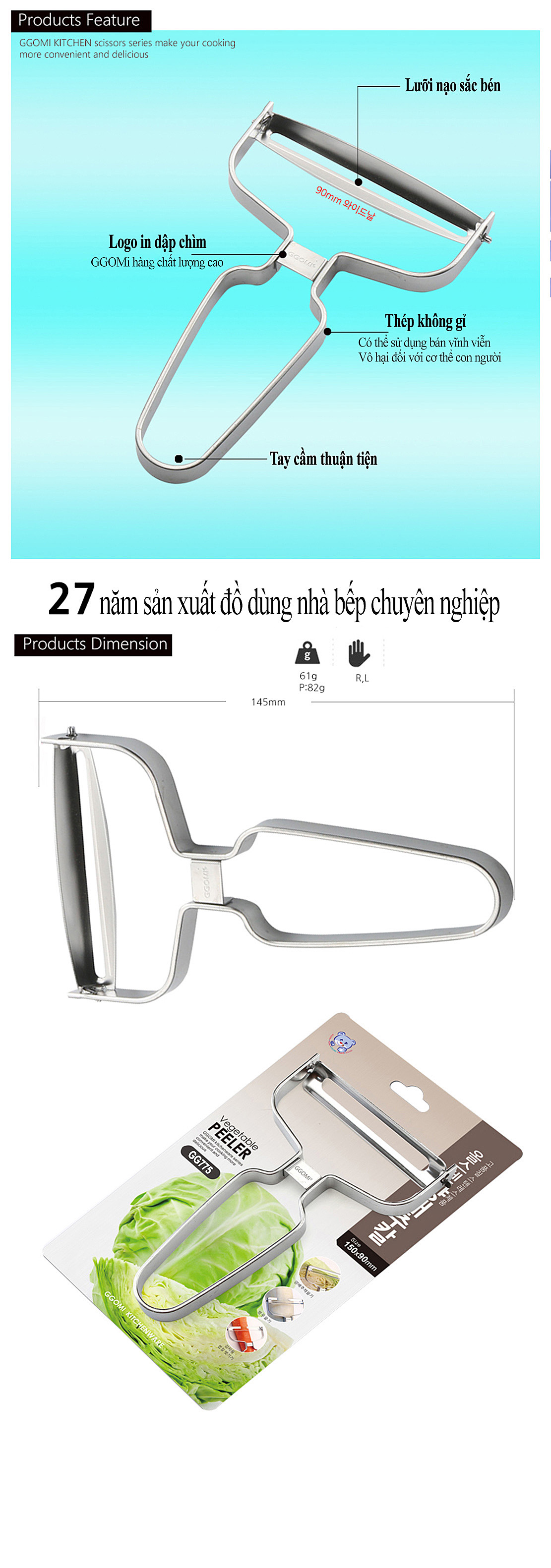 Tên sản phẩm: Nạo thông minh (2 lưỡi) GGOMI GG775