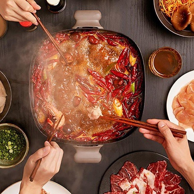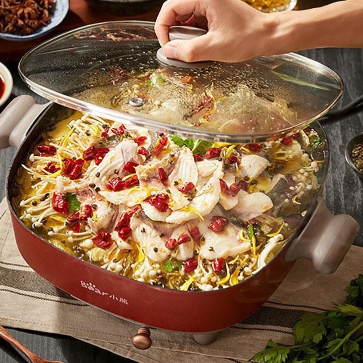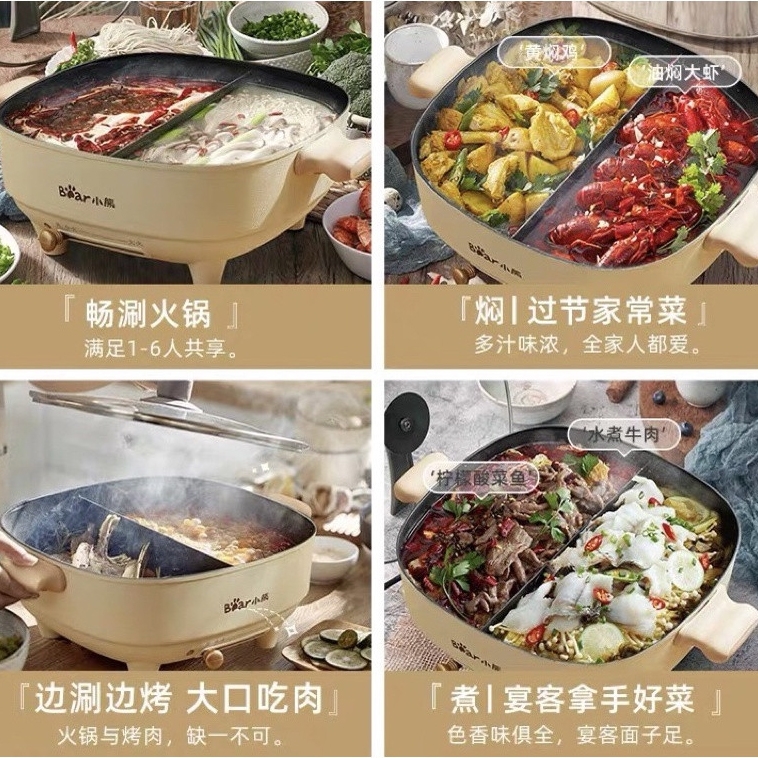 Nồi lẩu đa năng Bear DHG-C50F2 Nồi lẩu điện dung tích lớn dùng cho 5-8 người – Lòng nồi chống dính, có thể dùng để chiên, xào, rang, nấu các món khác vô cùng tiện lợi.
